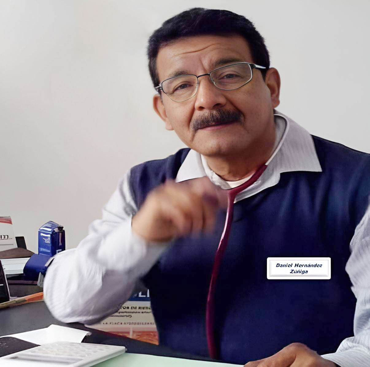 Daniel Hernández Zúñiga médico cardiólogo, especializado en la facultad de Medicina de la Universidad Nacional de San Marcos; Mención en Epidemiologia por la Escuela Nacional de Salud Publica/OPS y Administración por ESAN, maestría en investigación y docencia por Universidad Mayor de San Marcos. Miembro activo de la Sociedad Europea de Cardiología ID ESC 421280. Reconocida trayectoria por su línea profesional honesta en roles asistencial, gremial y cargos Directivos; investigador en temas de salud pública y estudios clínicos multicéntricos; Autor de iniciativas de mejoras asistenciales y cogestor en su implementación en diferentes Gerencias de EsSalud (IPSS).